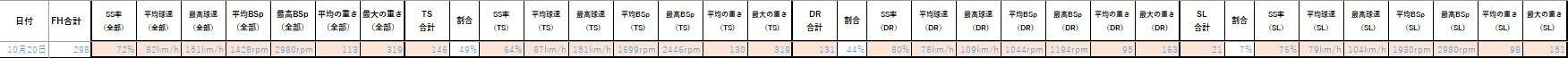 1球ごとのデータをエクセルに入力すると、かなり時間がかかるのでセッション毎の平均値と最高値を入力します。