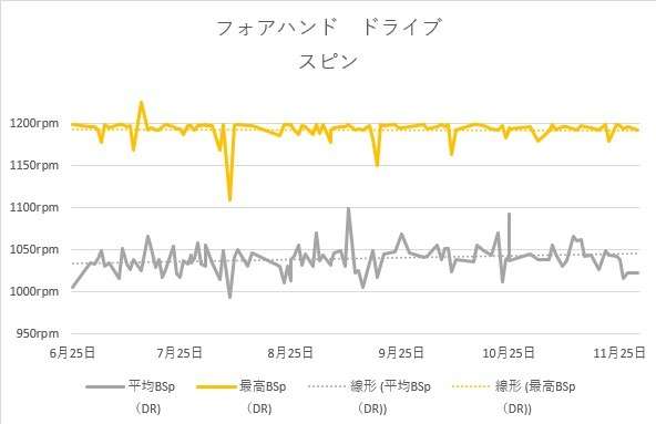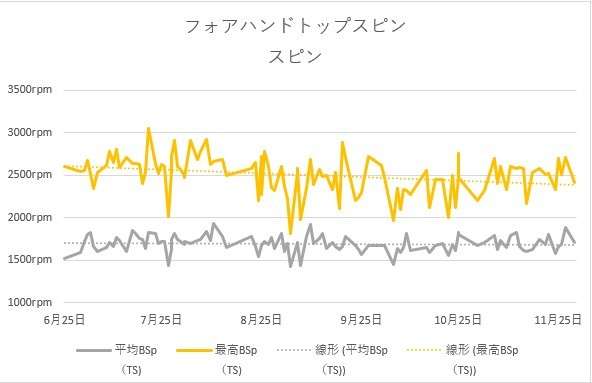最高スピン量は下降気味です