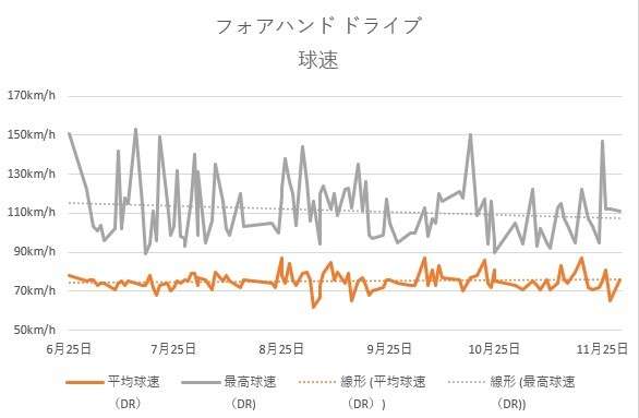 ③フォアハンドドライブ 球速