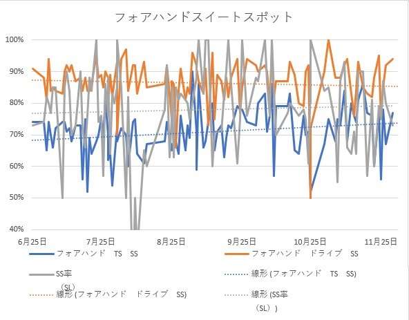 ⑦フォアハンドスイートスポット率