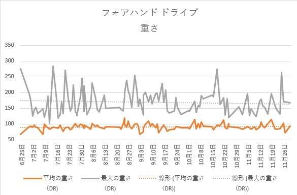 この重さの指標はどうやって計算しているかわからないですけど、数値が高いほど良いショットとすると