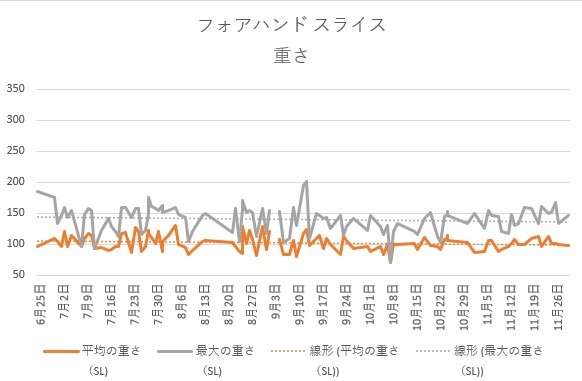 ⑩フォアハンドスライス 重さ